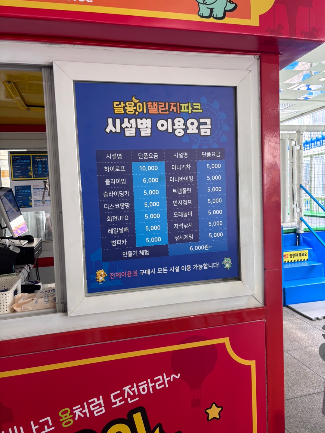 달용랜드 요금은 다음과 같아요.