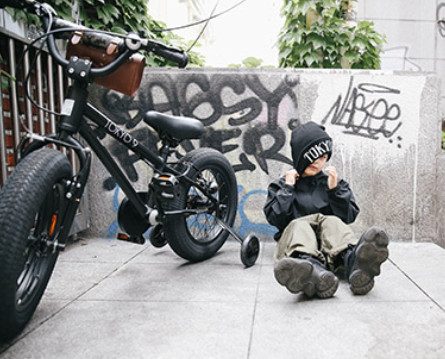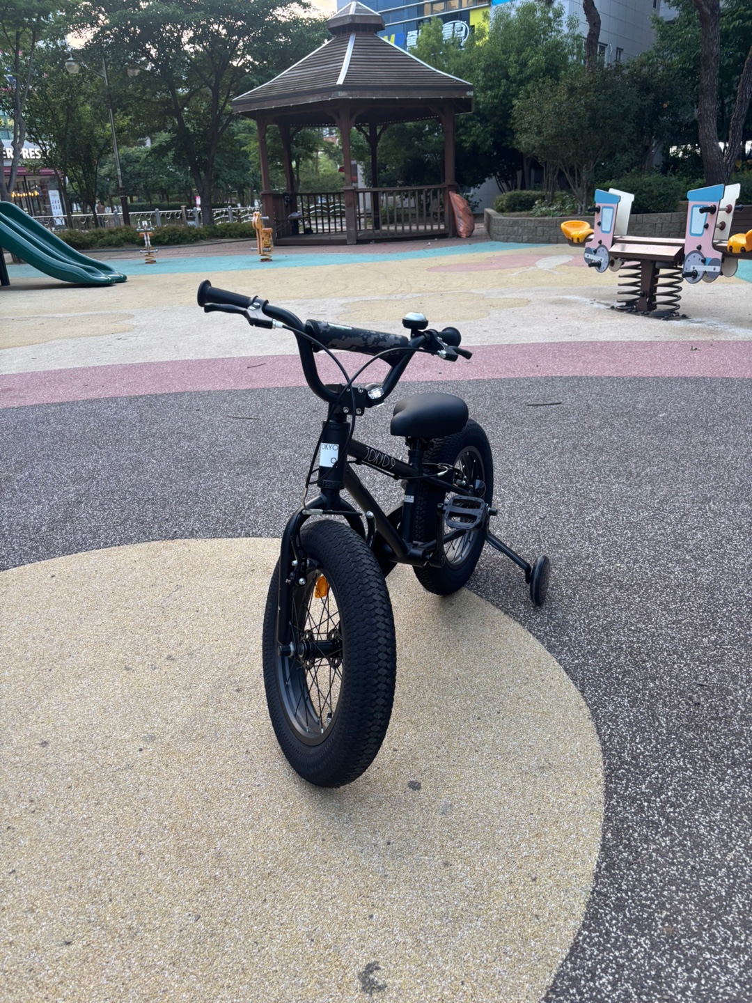 [랭글러블랙16인치 도쿄나인 어린이자전거 5세6세7세 보조바퀴 네발자전거]