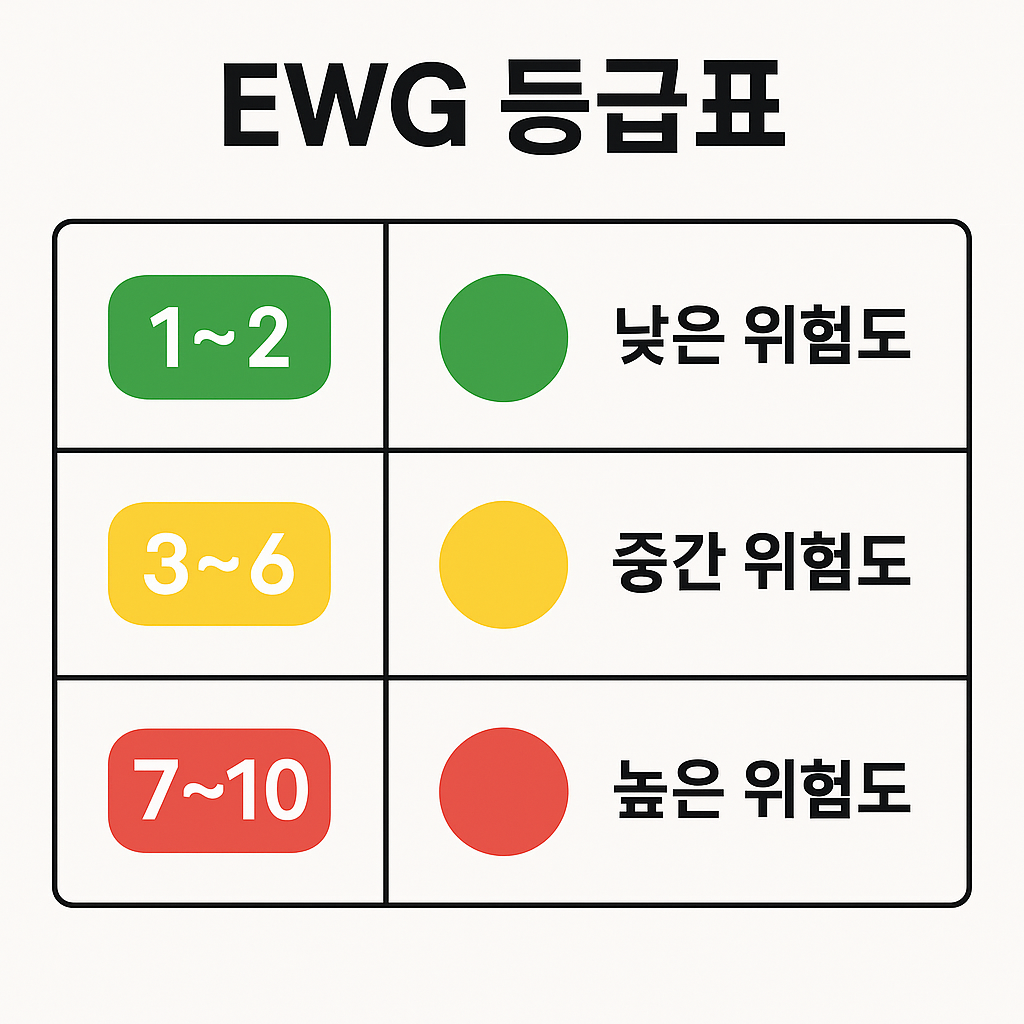 EWG는 화장품 성분의 위험도를 다음과 같이 3단계로 구분합니다.