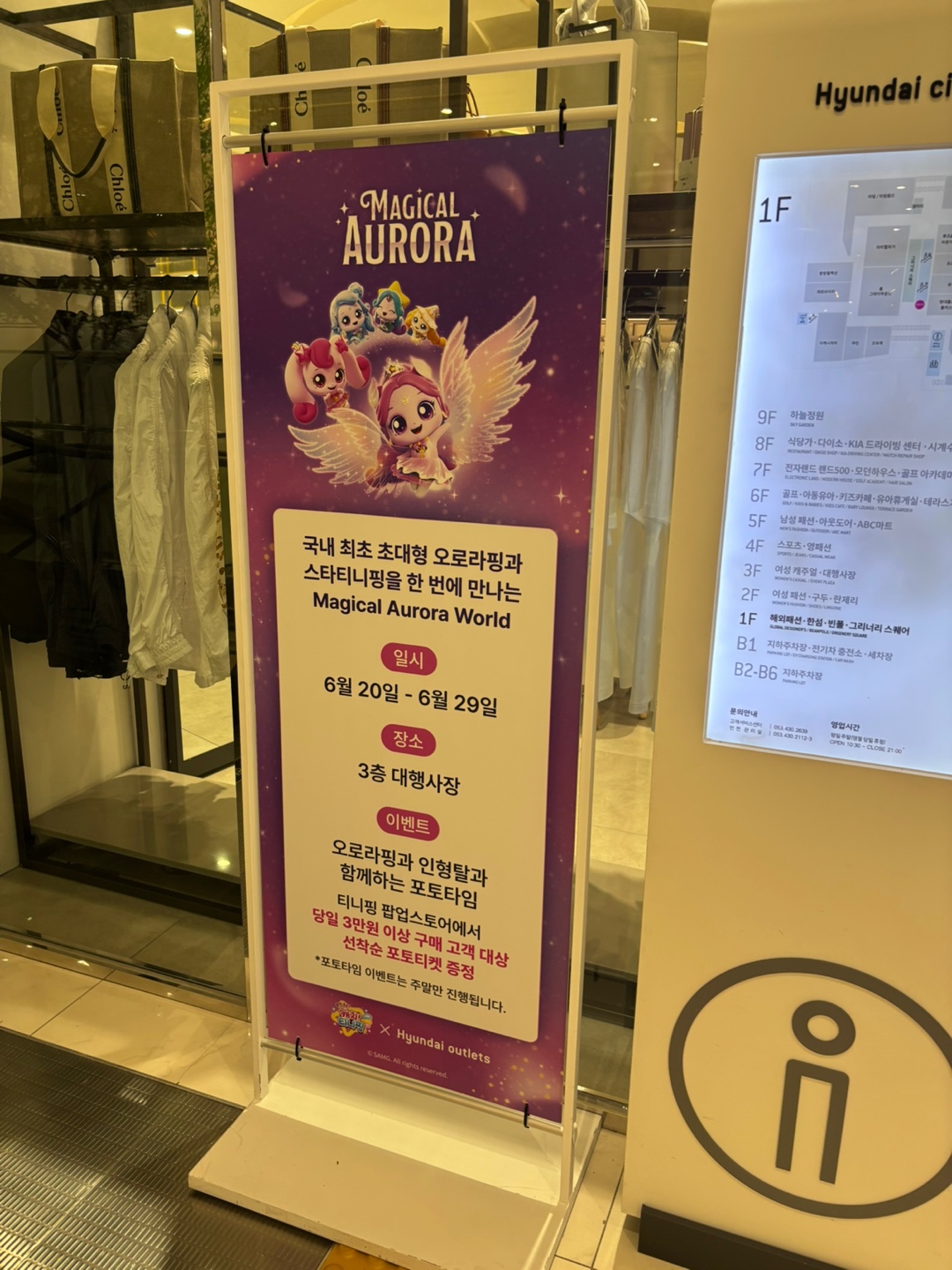 현대 아울렛에 도착하니 바로 정문에 초대형 오로라핑이 보이더라구요.