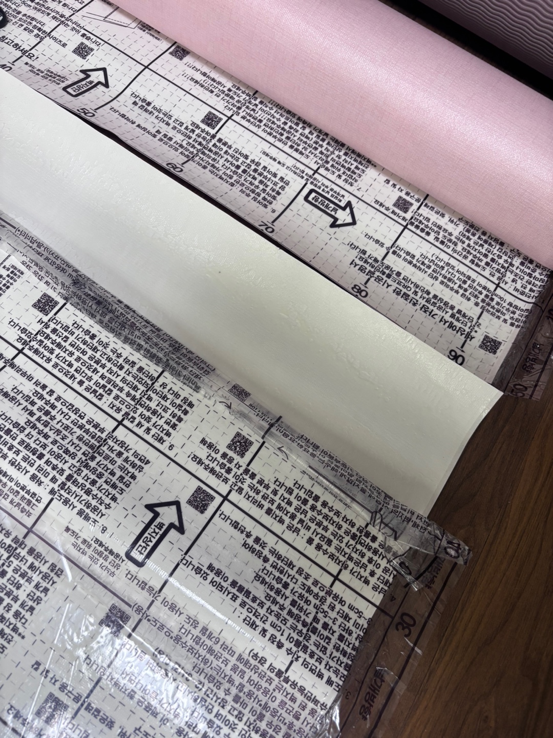 돌돌 말린 롤 형태로 와서 기장에 맞춰 자르고 붙이면 됩니다.